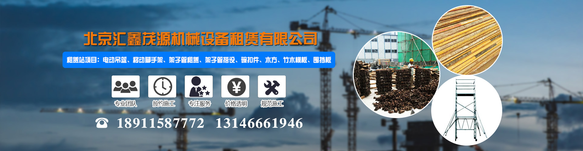 租賃站項(xiàng)目:電動(dòng)吊籃、移動(dòng)腳手架、架子管租賃、架子管搭設(shè)、碗扣件、木方、竹木模板、圍擋板。